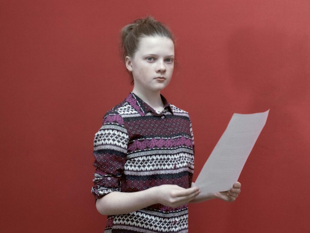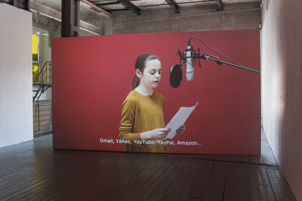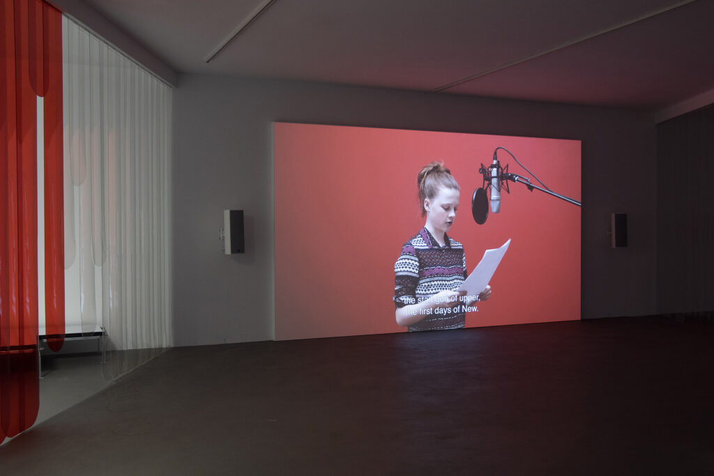 Secret Words and Related Stories is a set of anonymously collected passwords and the stories behind them. The entry point is personal “secrets” and security, and their place in contemporary society. To examine independence—a limited kind of independence—is to unravel what security means to the identity, a kind of coding of physical history and memory to access all kinds of commerce and services in the virtual world. That key is compressed into these fragments of language (passwords) that areunpackaged through the work. In the video, young actors between the ages of 12 and 16 years stand in front of a red backdrop and read from a sheet of paper, narrating personal confessions, childhood memories, and clichéd rationalities. These are thoughtful, humorous, and emotional stories about a chosen word that often discloses personal information, which is the antithesis of its purpose. The 74 passwords and corresponding stories featured in this video are also collected in an eponymous book, published in the style of a paperback novel.